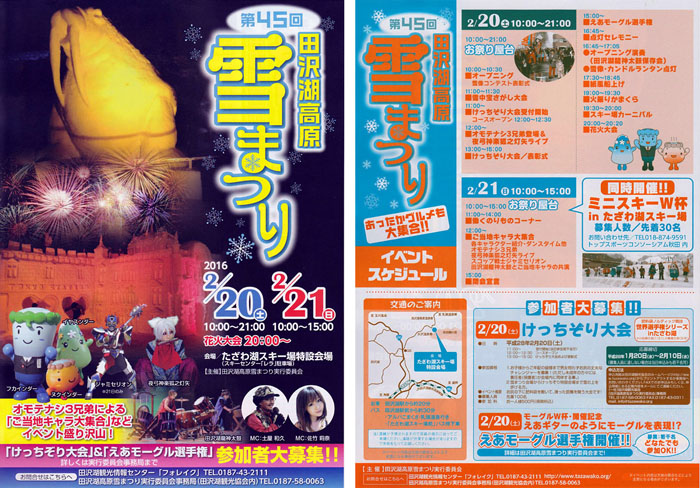 2016年2月20日・21日 田沢湖高原雪まつりステージイベント企画運営 場所:たざわ湖スキー場