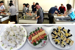 2014年10月24日(金)田沢長いもを使った料理教室を実施 実施メニュー 長芋を使った料理(長芋のはさみ焼き) 長芋を使ったサラダ(長芋の生ハム巻き) 長芋を使ったスイーツ(長芋の茶巾) その他 新米でトロロご飯、 長芋の柚餅子、寒天、じょうよ饅頭 など |