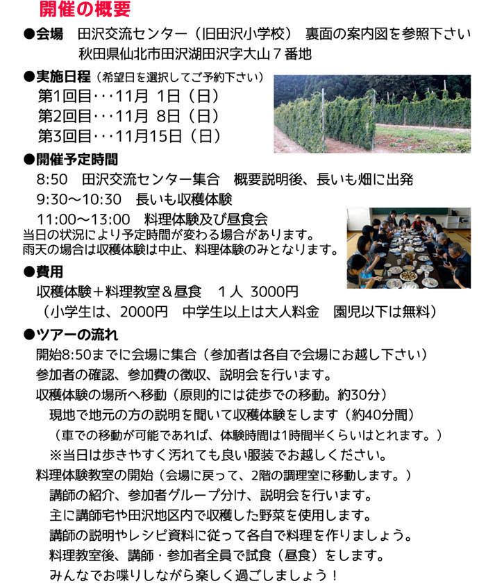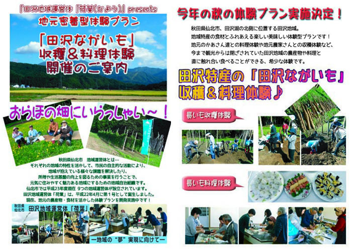 下記は、平成27年に実施した「田沢ながいも」の収穫&料理体験プランの時のご案内です。