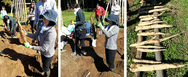 ![]() 地元農家の方から指導を受けて、初めての長いも掘りに挑戦です。 ![]() ![]() ![]() 長いもを傷つけづに掘り出すには、コツがいります。皆さん夢中になってトライしていました。 ![]() ![]() 大きな長いもを見事掘り出したときの達成感は格別です♪ ![]() 収穫体験が終了して、むらの喫茶店「たざわ」にて昼食タイム ![]() 長いもを使った特別メニュー。最高の昼食でした♪ |