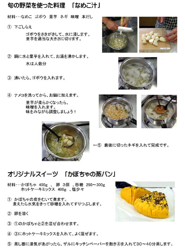 体験記 2014年10月3日に旬の野菜やキノコを使った料理教室のレシピの参考資料をご紹介します。